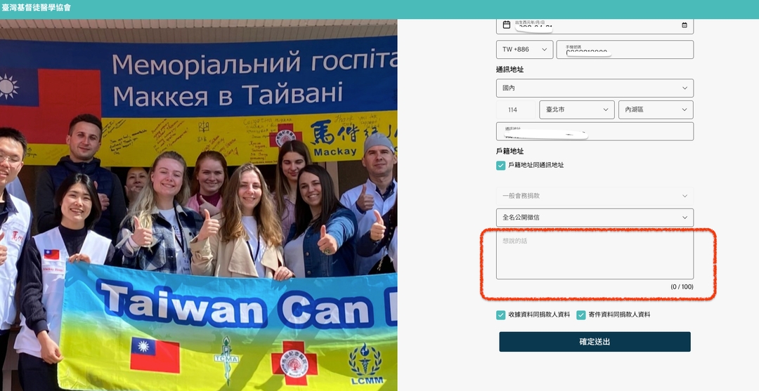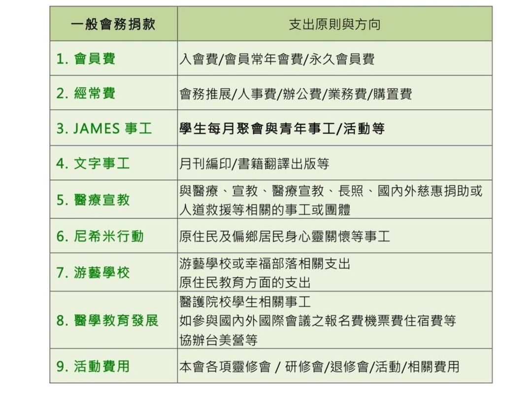 請參考以上九項會務捐款項目,在填寫捐款資料時,最底下的備註欄填入想奉獻的會務選項,若未填寫將併入經常費捐款捐款流程點選欲捐款金額或自行輸入金額選擇「定期定額」或「單筆捐款」> 確認捐款金額選取付款方式(信用卡/ATM/超商代碼),確認付款輸入捐款人資料,最底下的「想說的話」填入想奉獻的會務選項,確定送出完成捐款
